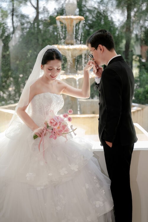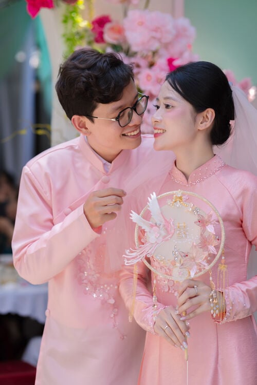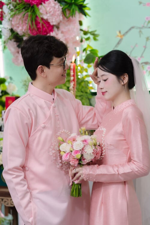 “Tiếng trái tim đôi ta đập thật nhanh. Thì thầm lời yêu thương. Ngày tình về chung đôi...” Sau bao nhiêu chờ đợi, cuối cùng ngày vui của chúng ta cũng tới rồi. Cảm ơn vì mình đã luôn là một phần trong cuộc sống của nhau. Em và anh không chỉ là người yêu mà chúng ta còn là tri kỷ. Ngày hôm nay, em sẽ là cô dâu của anh và sau này sẽ là mẹ của các con anh.